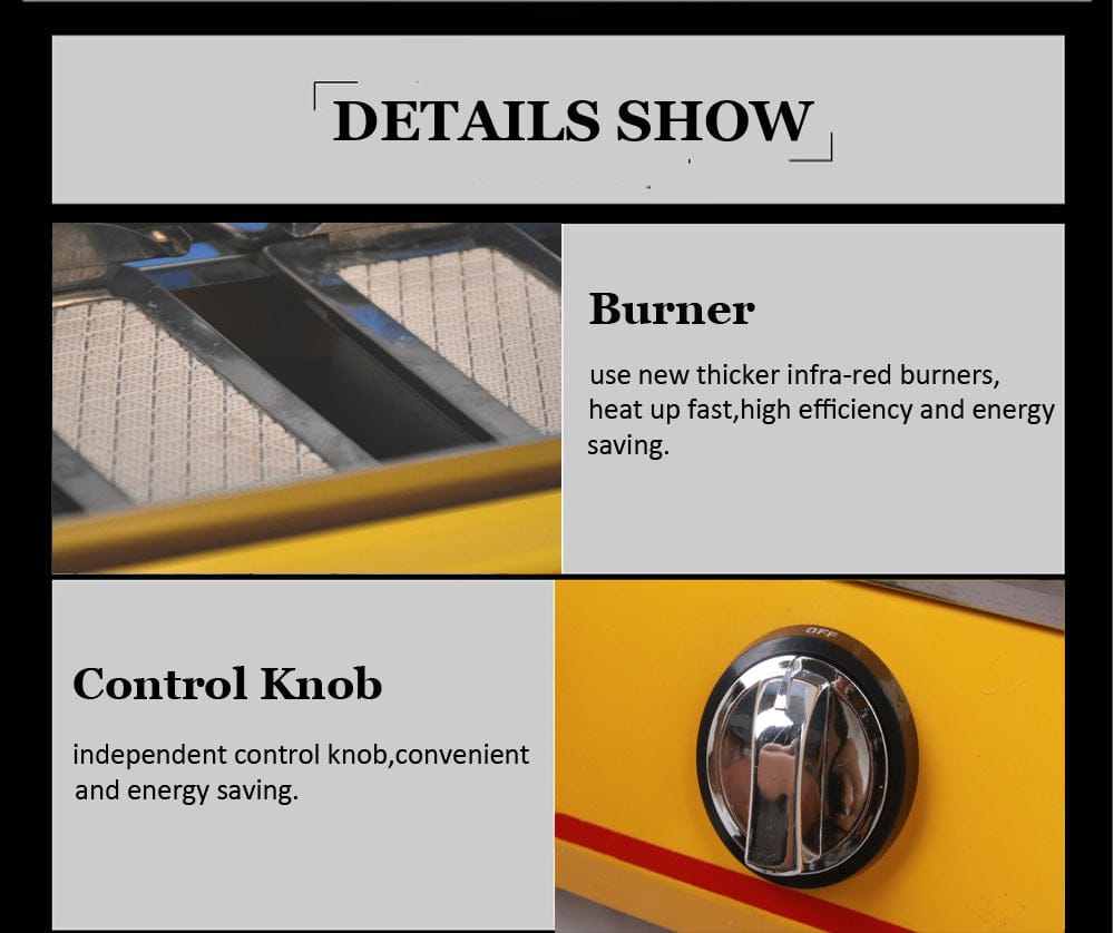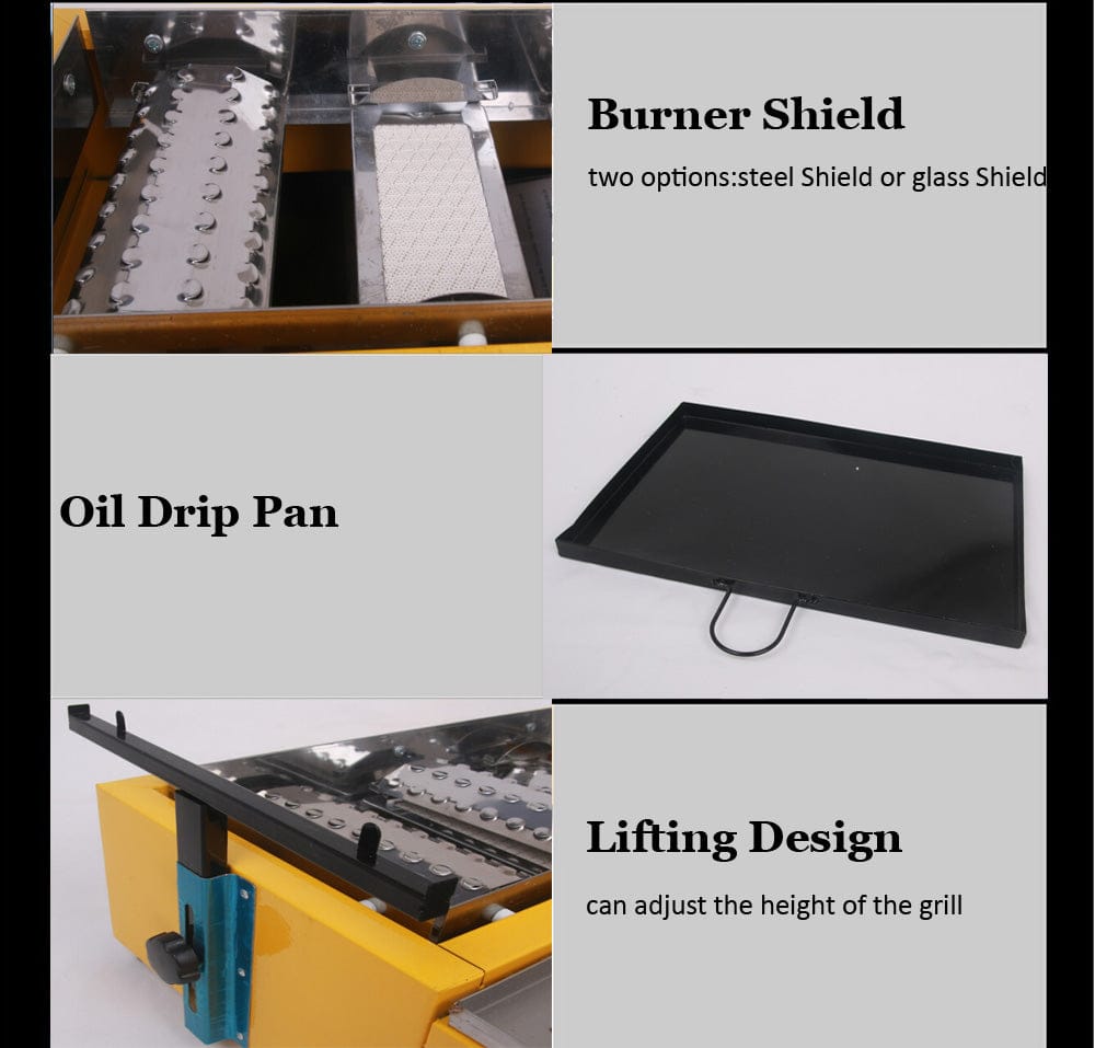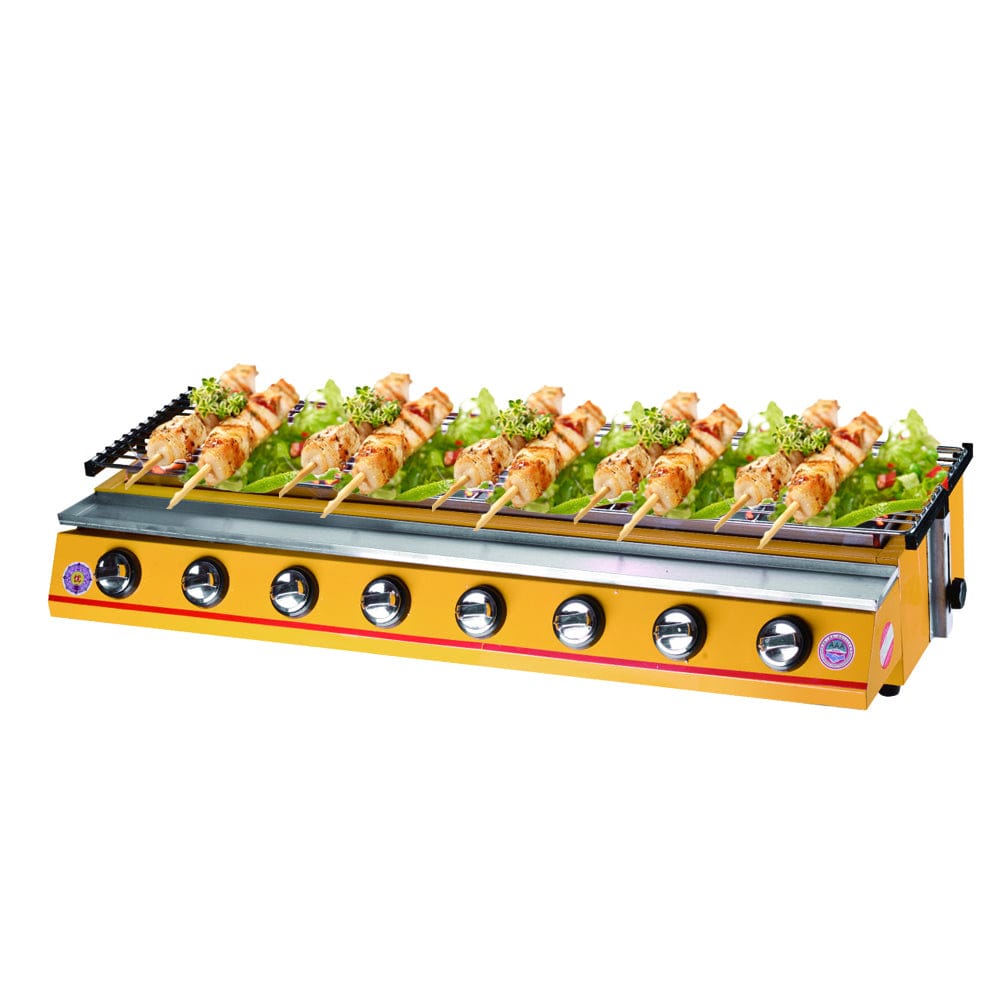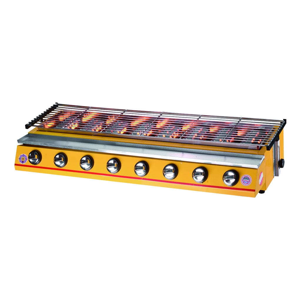 8 Burners LPG Gas BBQ Cooker Stainless Steel Smokeless Yellow