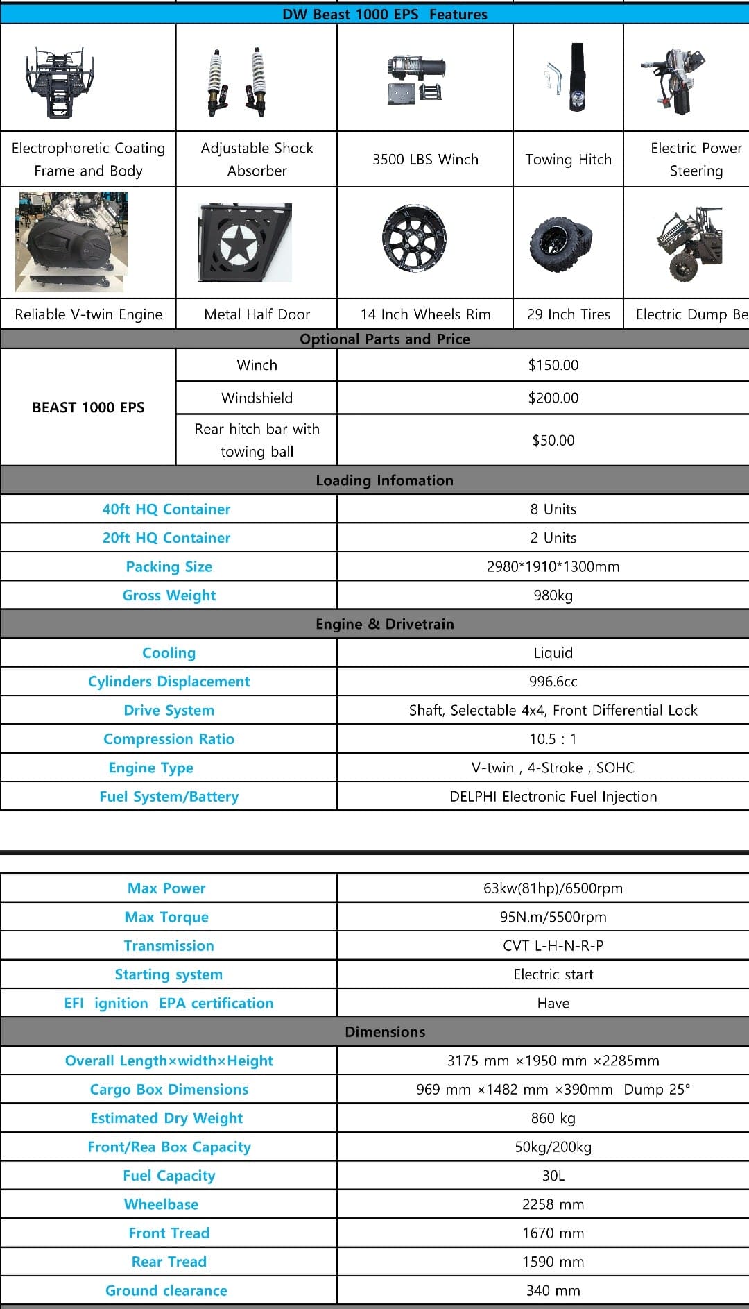 UTVS 1000cc 2 Seat UTV